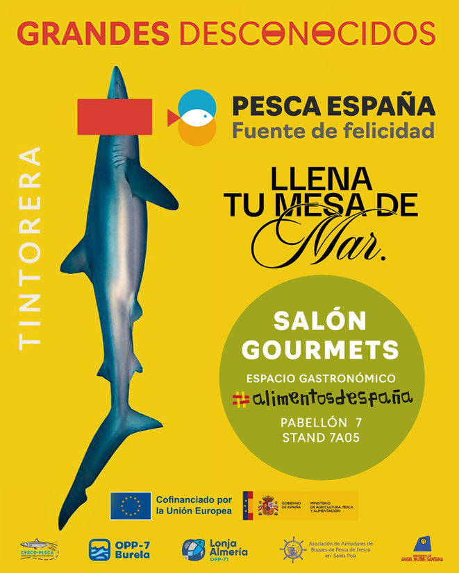 Junto al pulpo cabezudo, pintarroja, jurel o la gamba blanca, PESCA ESPAÑA presentó nuestra tintorera como ejemplo de especies de bajo valor comercial, pero con grandes posibilidades gastronómicas, promoviendo su consumo como una opción deliciosa y saludable para enriquecer nuestras mesas.