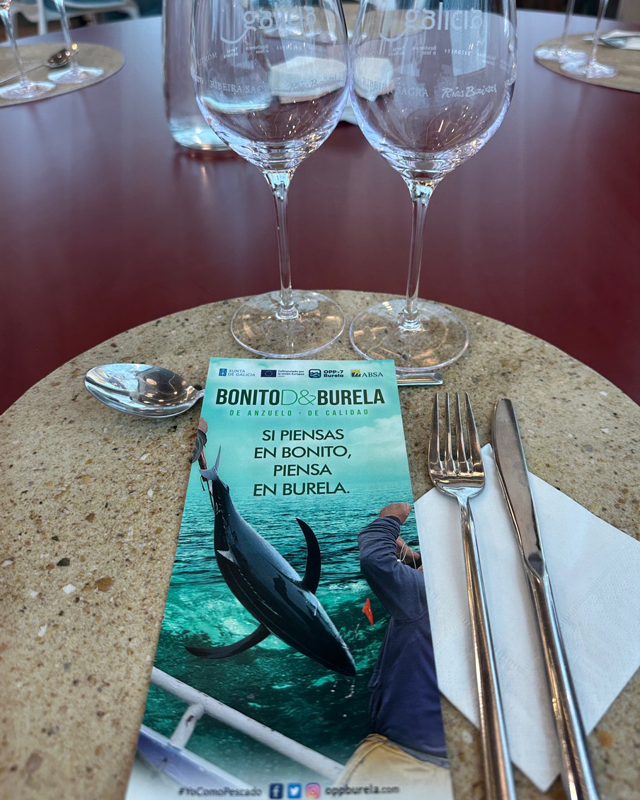 La chef Begoña Váquez (Restaurante Regueiro da Coba, Verín-Ourense) presentó sus platos creados con los productos estrella de la lonja de Burela, que estuvieron acompañados por vinos D.O. Rías Baixas y Ribeira Sacra, respectivamente: