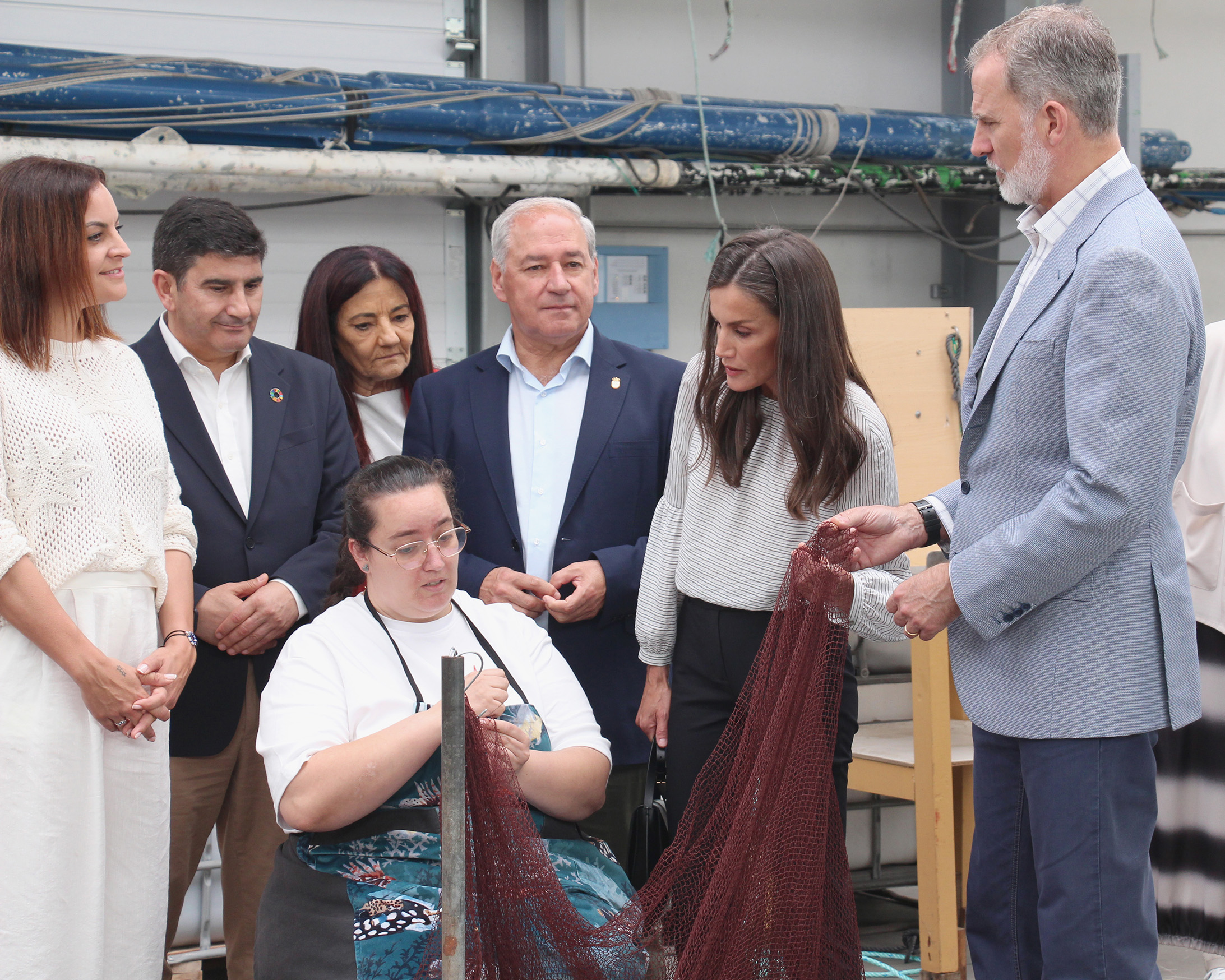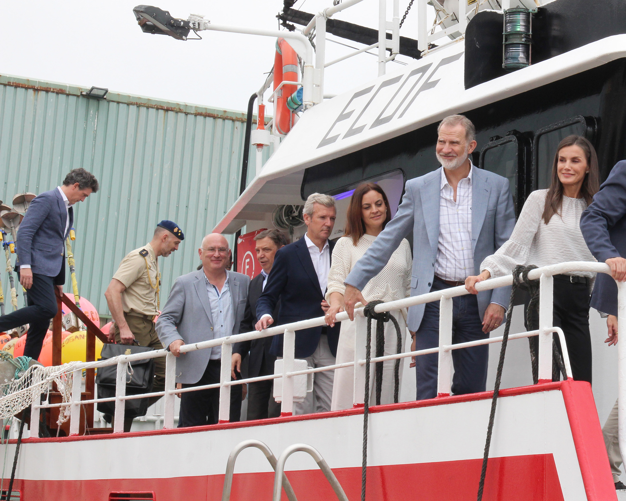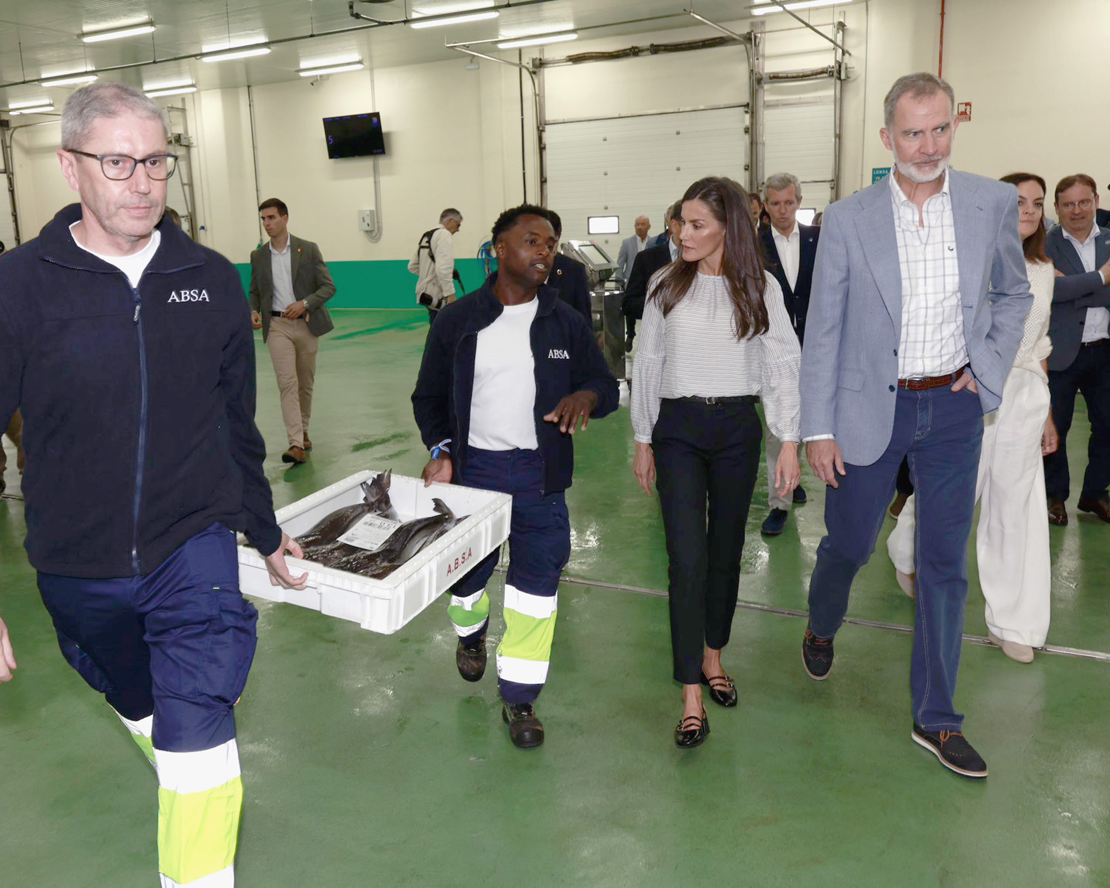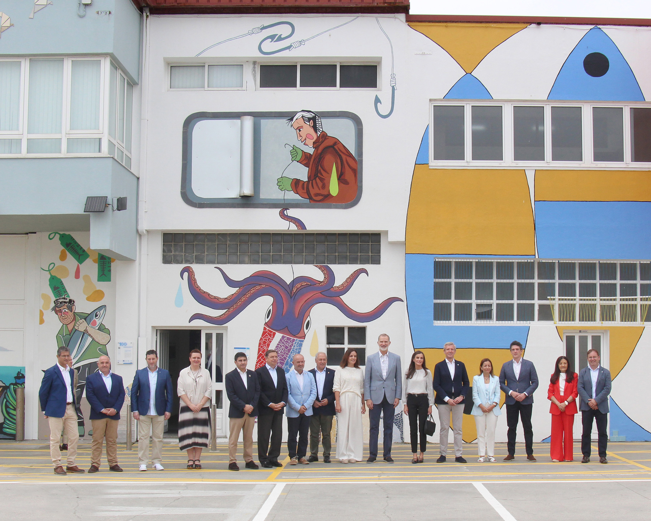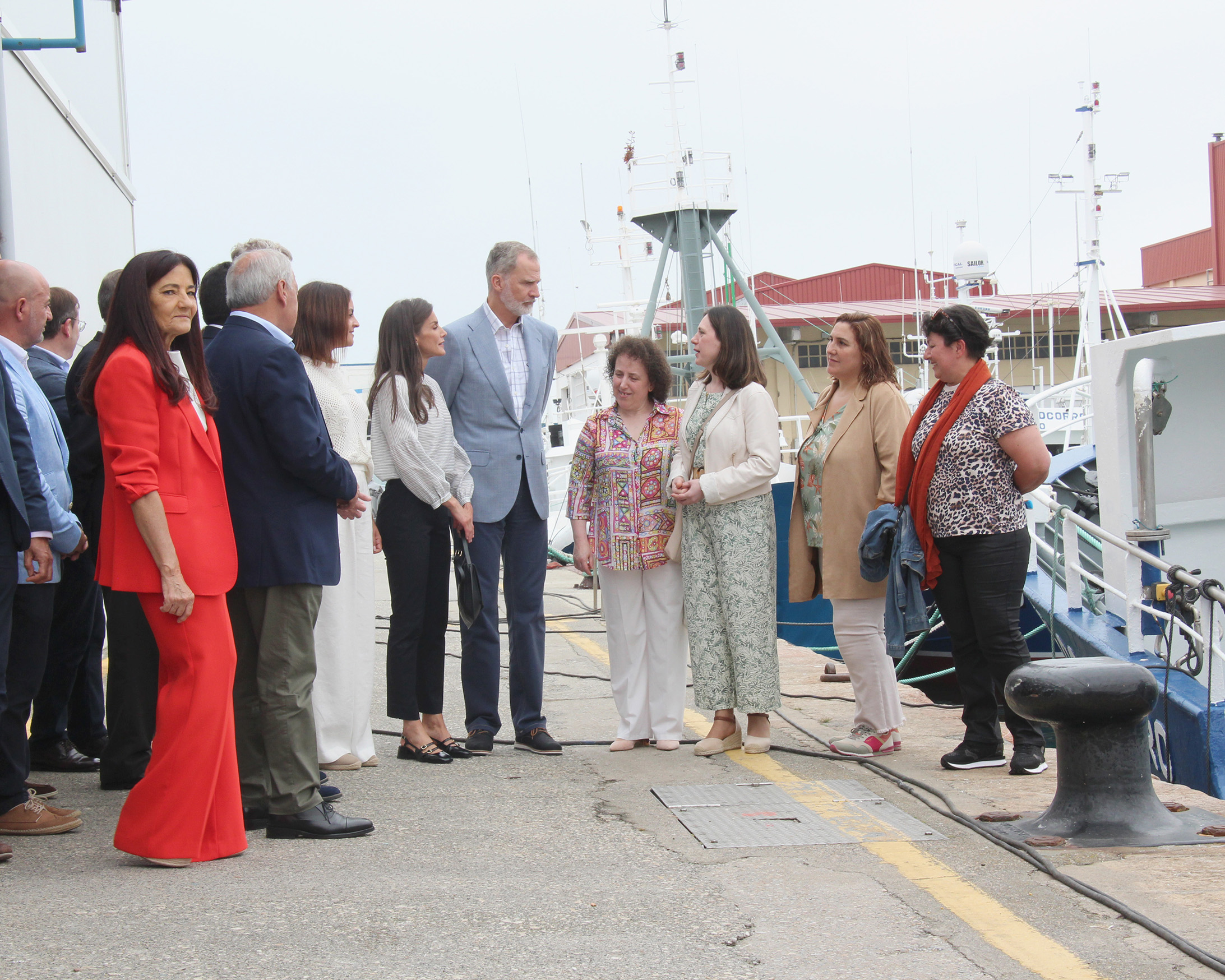 Dentro de su visita a Burela, SSMM los Reyes se acercaron hasta la lonja de Armadores de Burela, visitaron sus instalaciones y conocieron su funcionamiento, que combina tradición y modernidad, ya que se trata de una lonja de pescado única con subasta oral automatizada.