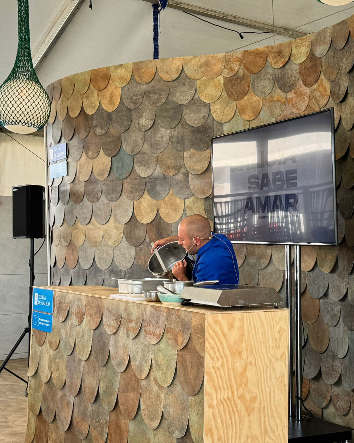 Los visitantes al espacio de la Consellería do Mar pudieron seguir la preparación y degustar platos elaborados por algunos de los mejores chefs gallegos con diferentes pescados, mariscos, algas o conservas de Galicia, acompañadas con vinos de Denominación de Origen.