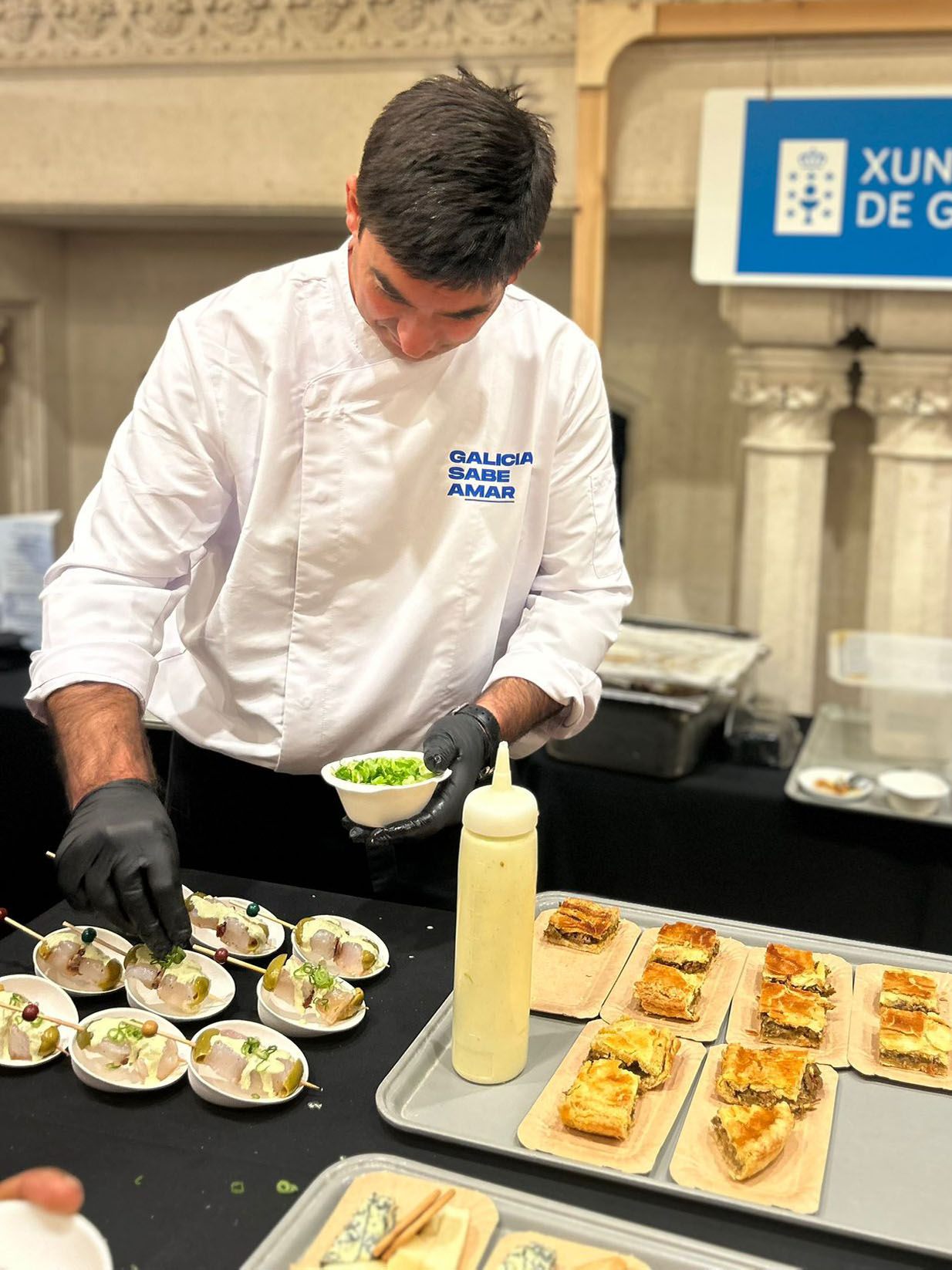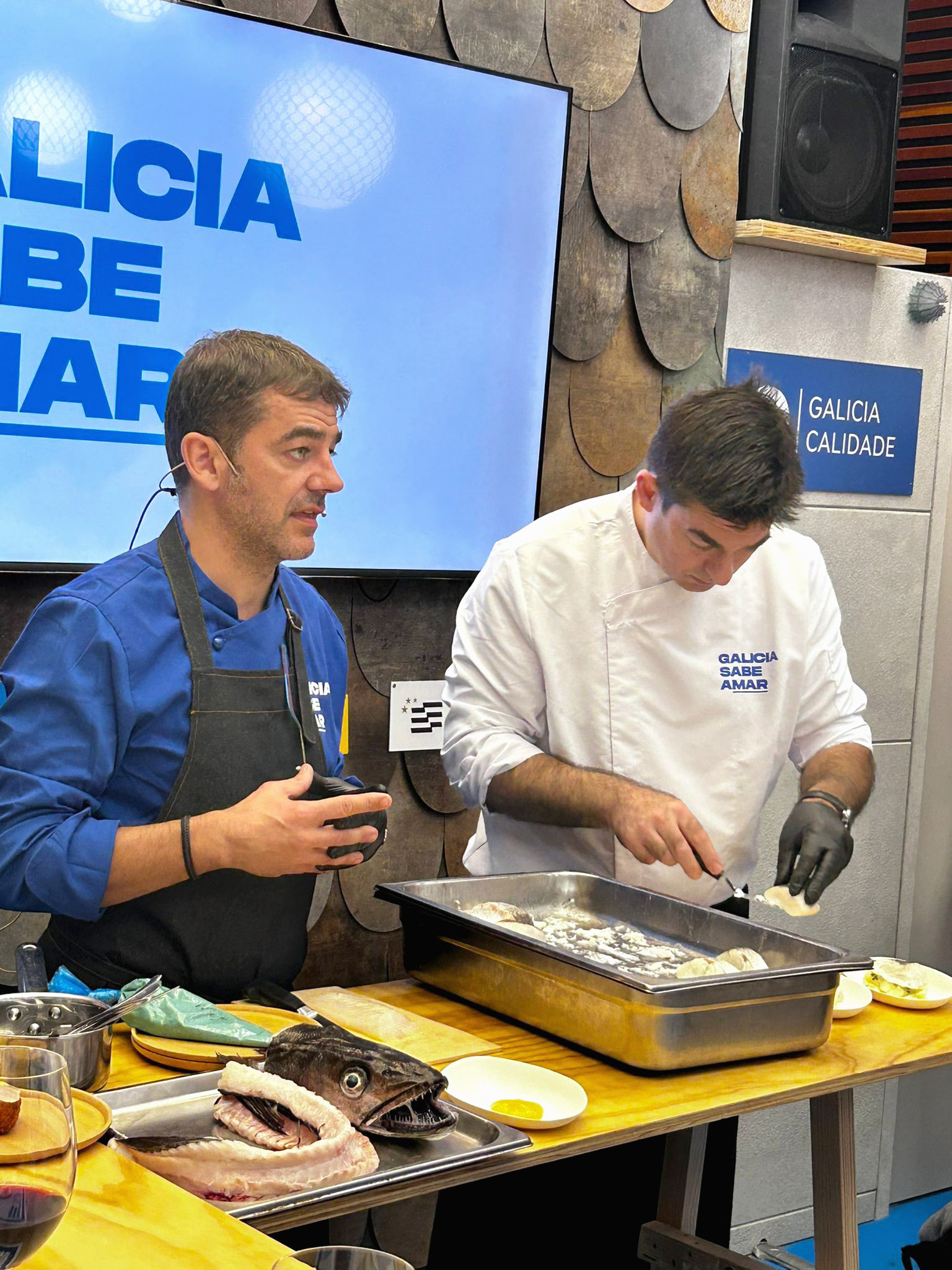 El miércoles por la mañana, los chefs Héctor y Paco López del Restaurante España (Lugo) llevaron a cabo el showcooking “El Secreto del Norte: MERLUZA DE BURELA”, con posterior degustación de nuestra Merluza del Pincho con vinos de la DO Ribeiro