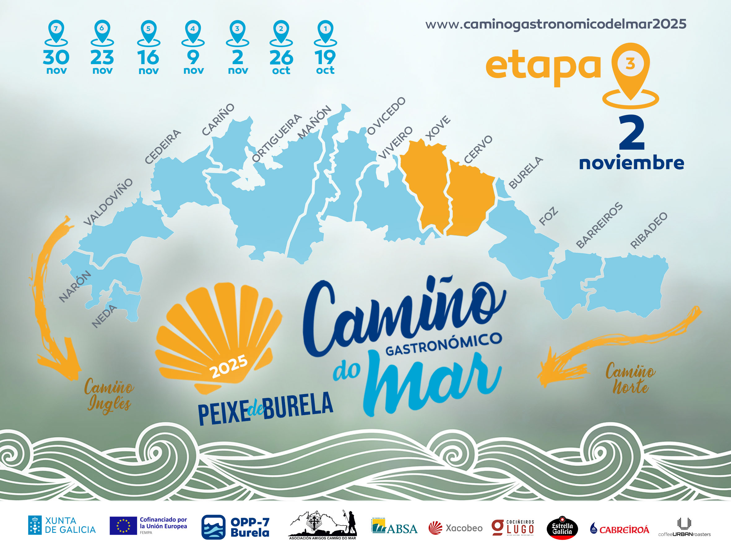 Los próximos 4 domingos el “Camiño Gastronómico do Mar” seguirá cubriendo etapas especiales de esta ruta xacobea, recorriendo las comarcas de A Mariña Lucense y Ferrolterra-Rías Altas a través de los 15 concellos de la costa norte de Galicia por los que pasa el Camiño do Mar.