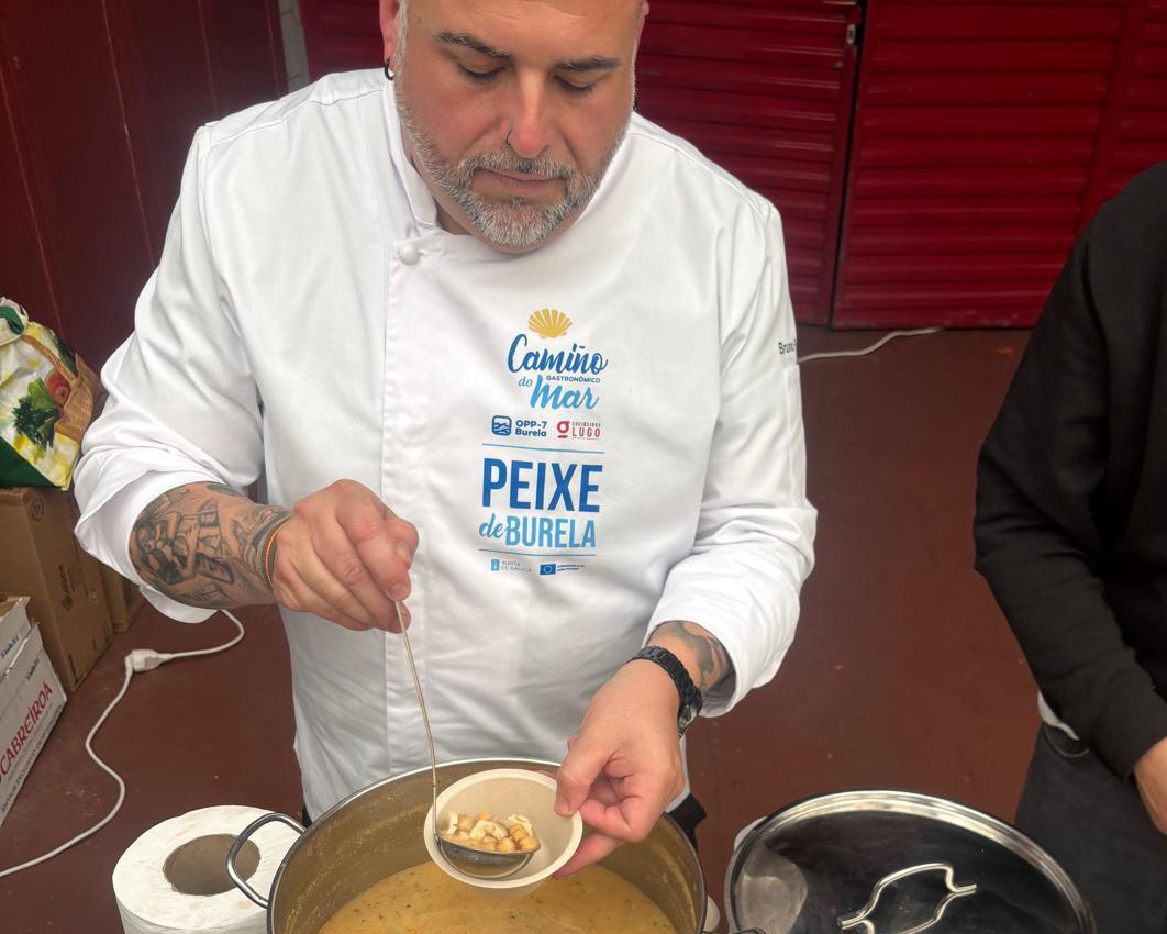Bruno Pena, chef de la asociación Cociñeiros Lugo, ofreció recetas de cabra de altura y pez espada, en representación de las flotas de palangre demersal y de superficie: