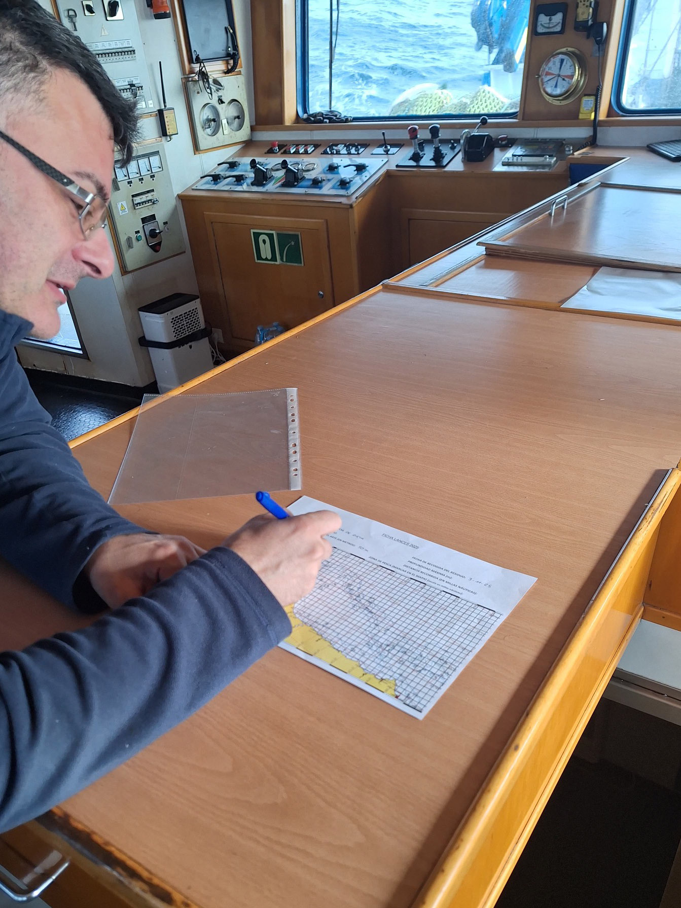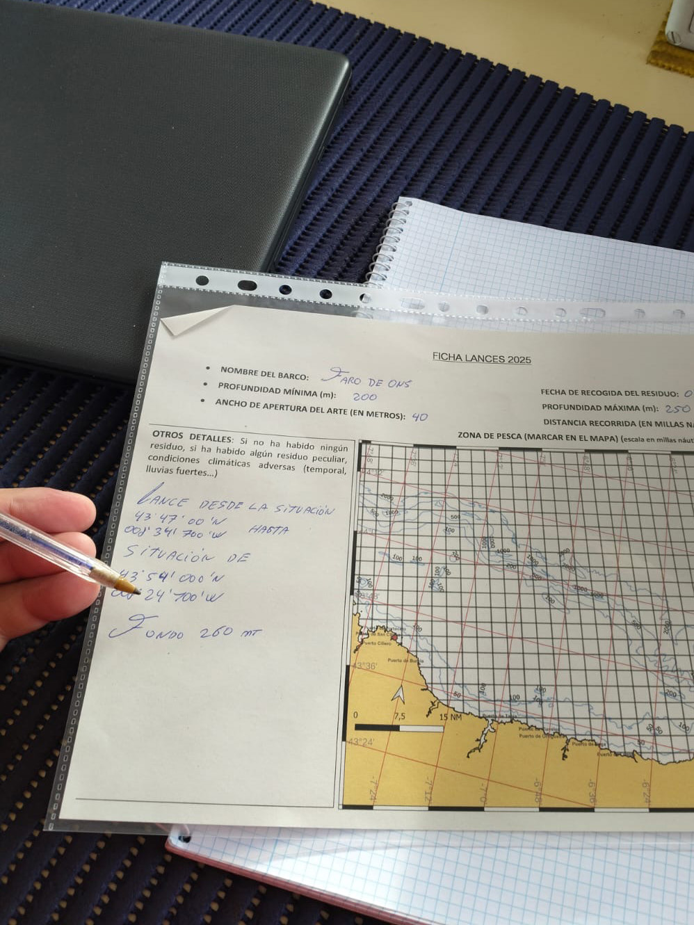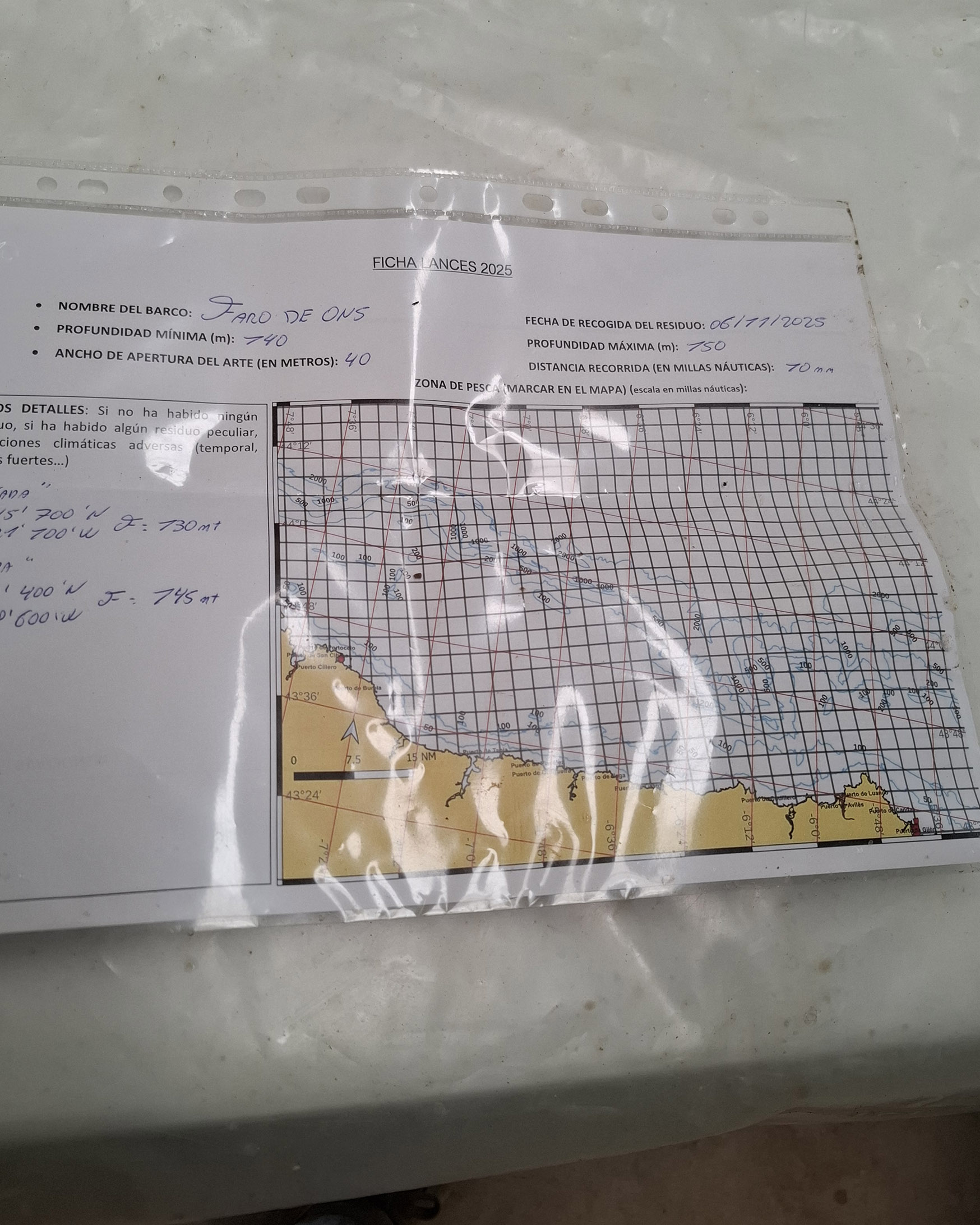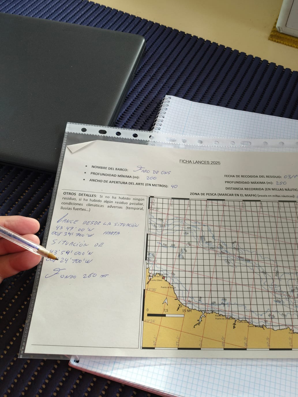 El análisis de las basuras marinas comienza durante el mismo proceso de pesca de nuestras flotas. De cada lance de pesca se marca sobre plano la zona de actividad y la basura recogida se identifica adecuadamente.