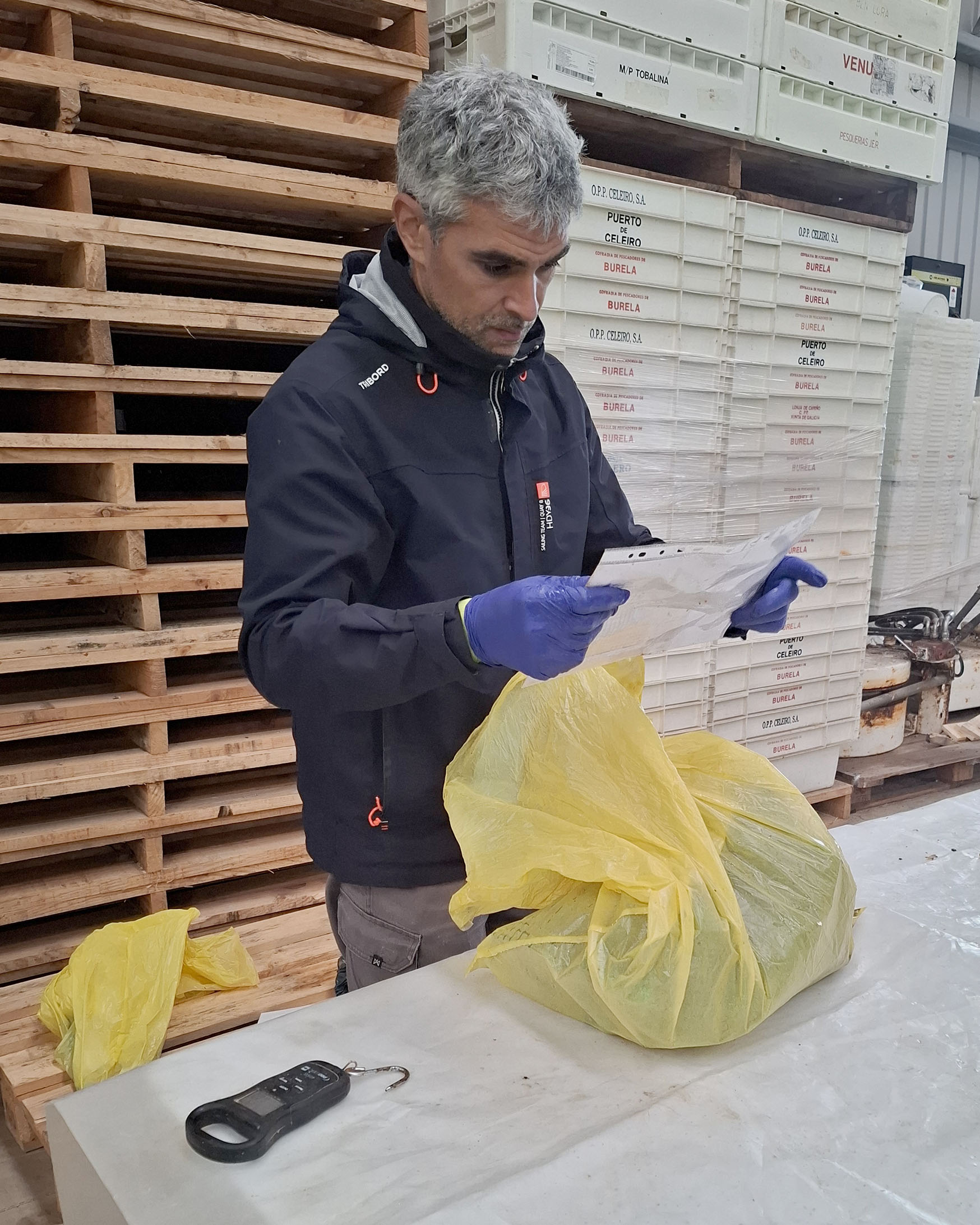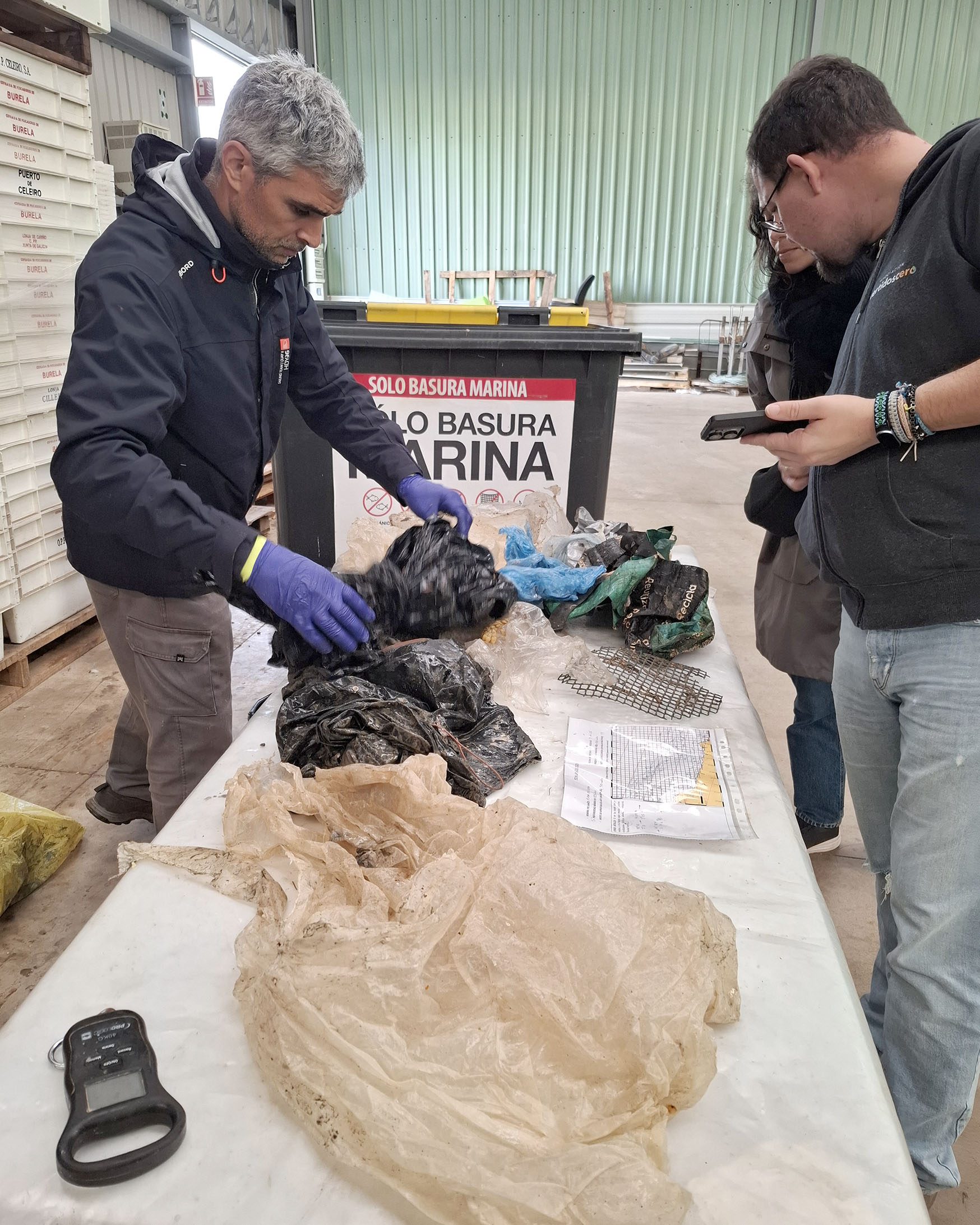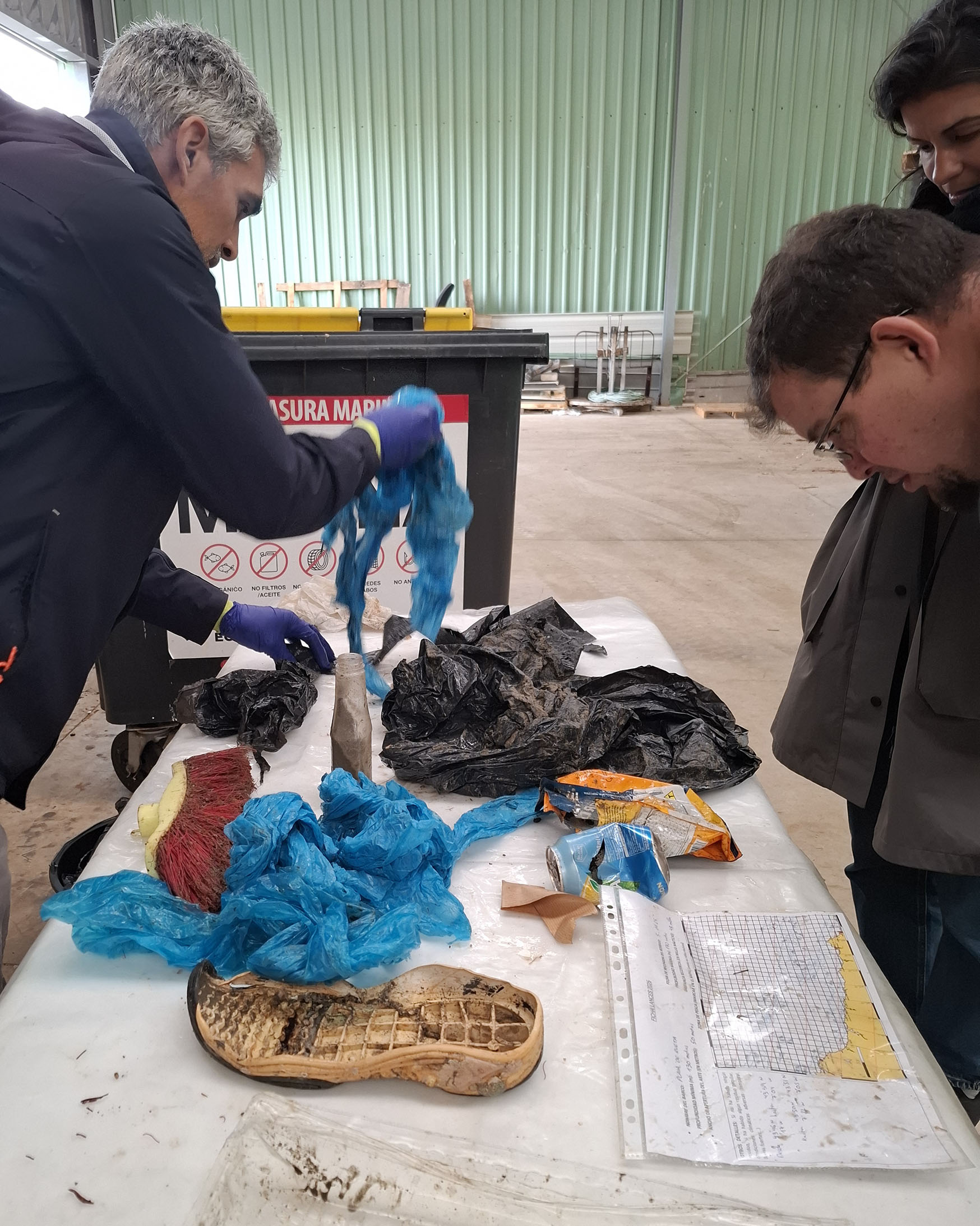 Después de las labores de recogida de basura marina en altamar por nuestra flota de arrastre de litoral, que clasifican y analizan las basuras en cada lance de pesca; el proceso se completa una vez en puerto, con la categorización e identificación de los diferentes tipos de basuras y la cantidad recogida.