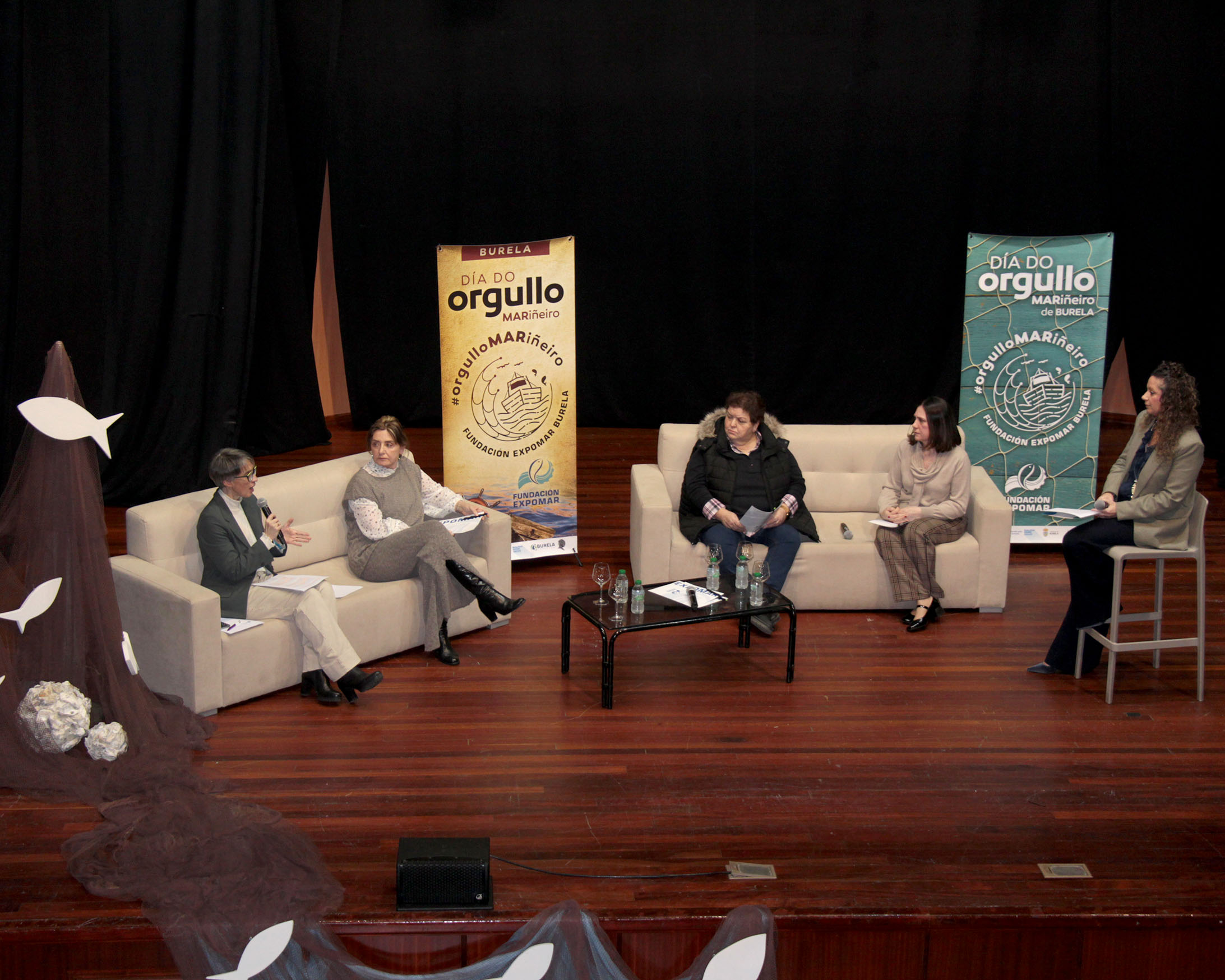 Por la tarde el auditorio de la Casa da Cultura de Burela acogió la charla-coloquio “A Muller e o Mar”, con la participación de distintas mujeres vinculadas a los oficios del mar: armadoras, estibadoras, redeiras y Administración.