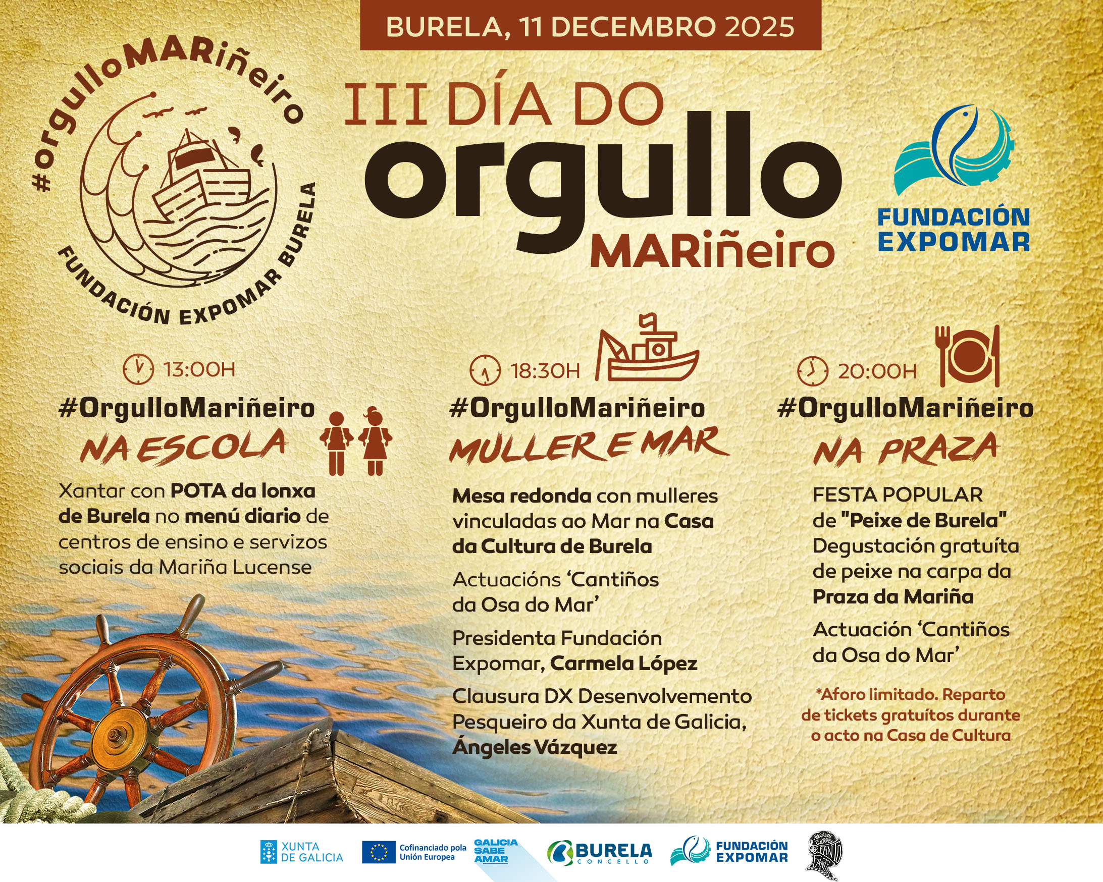 Así la Fundación Expomar vuelve a poner en valor la importancia de la cultura mariñeira de Burela con la celebración de su “Día do Orgullo Mariñeiro”, que vuelve a combinar la divulgación en las escuelas, la exaltación de la cultura mariñeira y la gastronomía del mar.