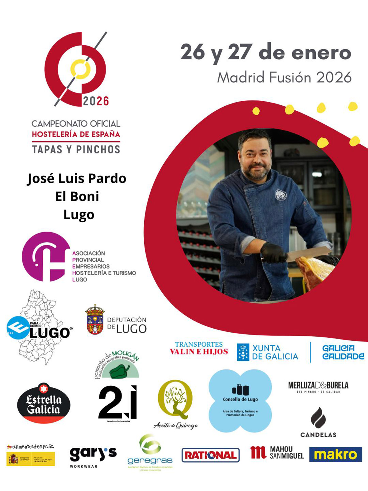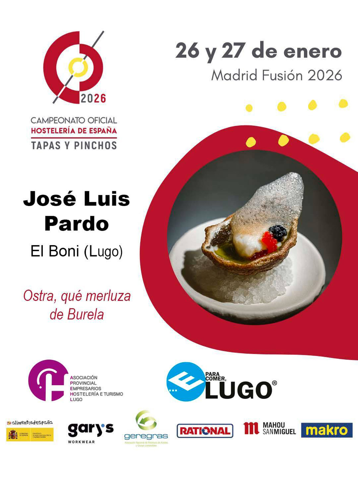 Esta es la tapa con la que la Asociación Provincial de Empresarios de Hostelería y Turismo de Lugo (Apehl) se clasificó ayer como finalista del IV Campeonato Oficial Hostelería de España Tapas y Pinchos, que organiza Hostelería de España durante el Congreso Internacional de Gastronomía Madrid Fusión, que está teniendo lugar esta semana en Madrid.