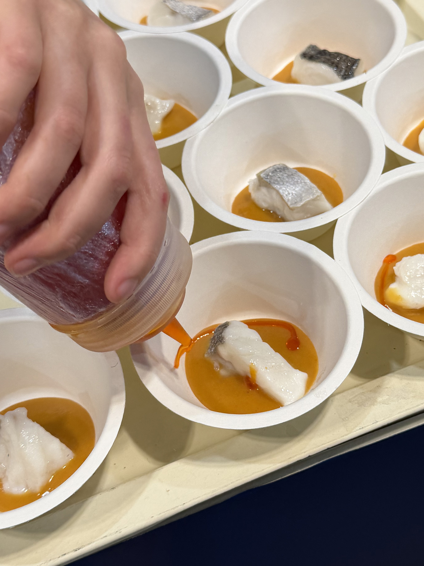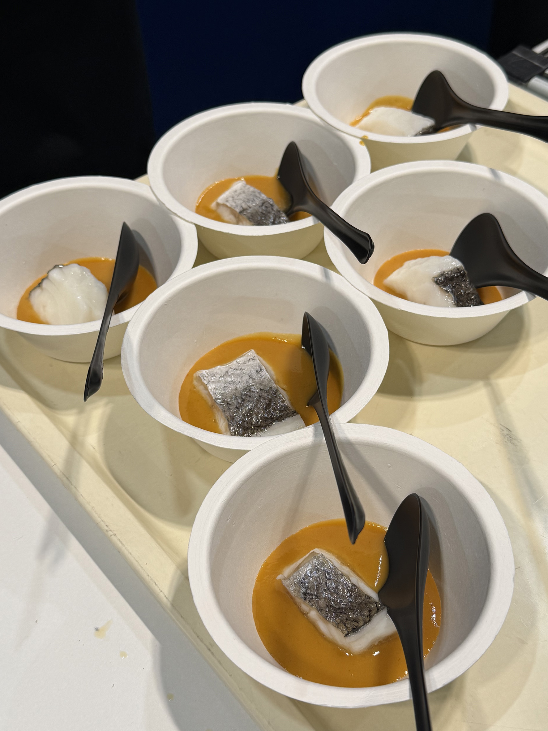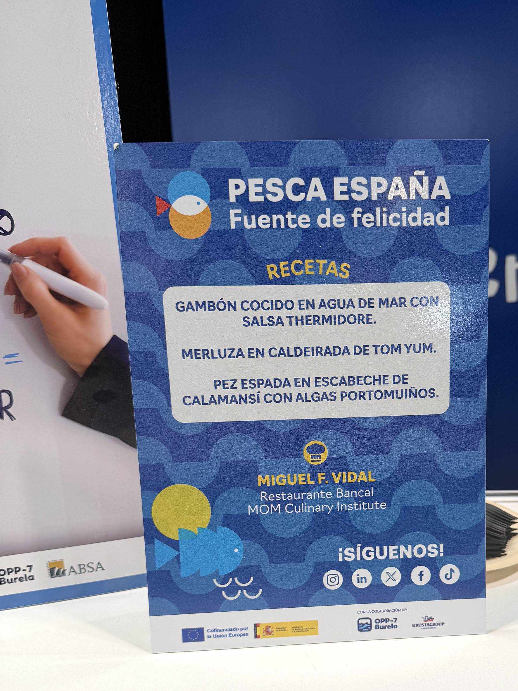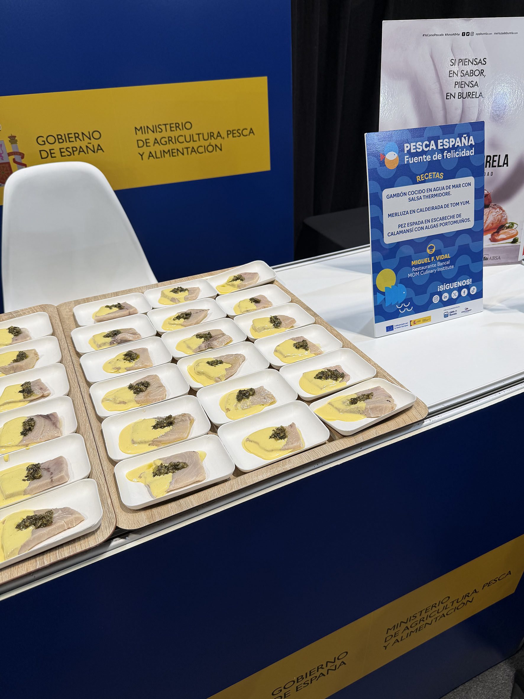El miércoles, de la mano de uno de nuestros chefs favoritos, Miguel F. Vidal (Restaurante Bancal, MOM Culinary Institute), en el stand del Ministerio de Agricultura, Pesca y Alimentación y Alimentos de España, dentro de la campaña Llena Tu Mesa de Mar en colaboración con Pesca España, se pudieron degustar estos platos con los pescados estrella de nuestras flotas de palangre demersal y palangre de superficie: