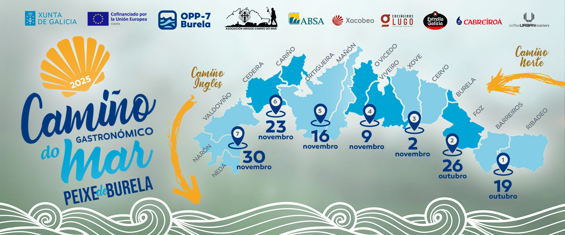 “CAMIÑO GASTRONÓMICO DO MAR”: SIETE SEMANAS DE RUTAS XACOBEAS, PEIXE DE BURELA Y GASTRONOMÍA La Organización de Productores Pesqueros del Puerto de Burela y la Asociación Amigos do Camiño do Mar Peregrinación a Santiago de Compostela, presentaron este...